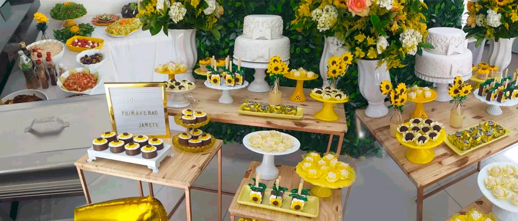 Serviço de buffet a domicílio, locação de peças para decoração.
